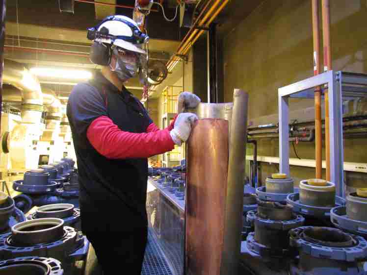 财神娱乐将废弃物转化成有效的工业或民生原物料,,,,图为废铜液淬炼后再制成纯度极高的铜管