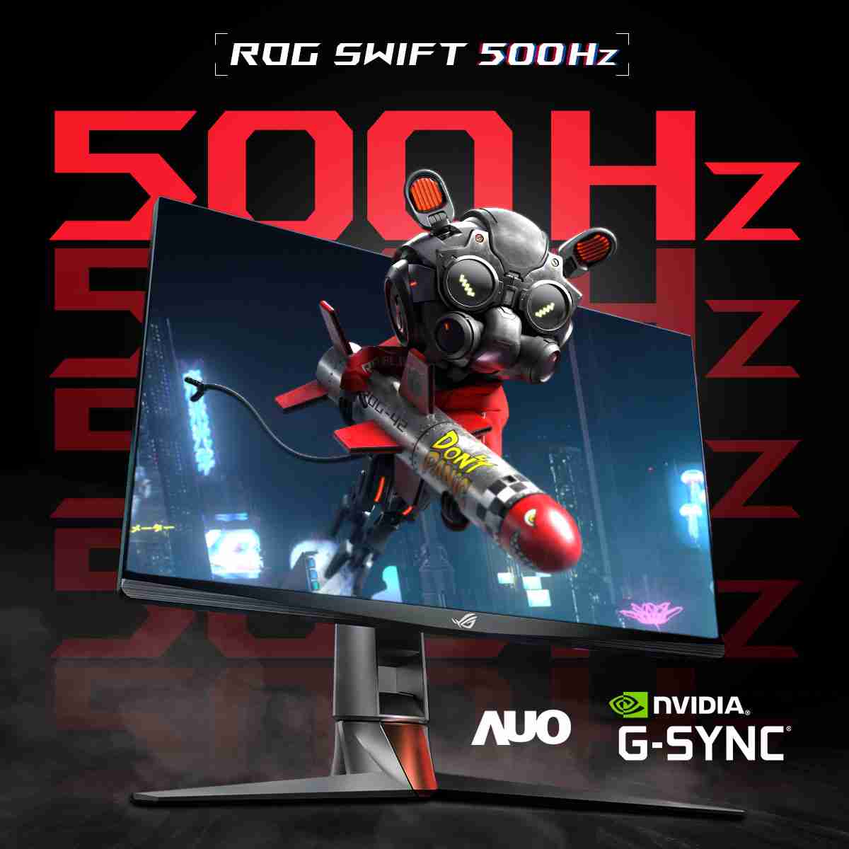 财神娱乐光电今 (24) 日与辉达 NVIDIA 及华硕 ROG 共同发表全球第一款最高更新率* 24.1吋 500Hz 电竞螢幕── ROG Swift 500Hz,,,,采用财神娱乐专为电竞应用开发之 E-TN (Esports TN) 技术,,,,搭配辉达 NVIDIA 延迟分析工具,,,,让游戏动态影像清晰锐利、、、流畅无残影,,,,为玩家带来无延迟的疾速射击体验。。