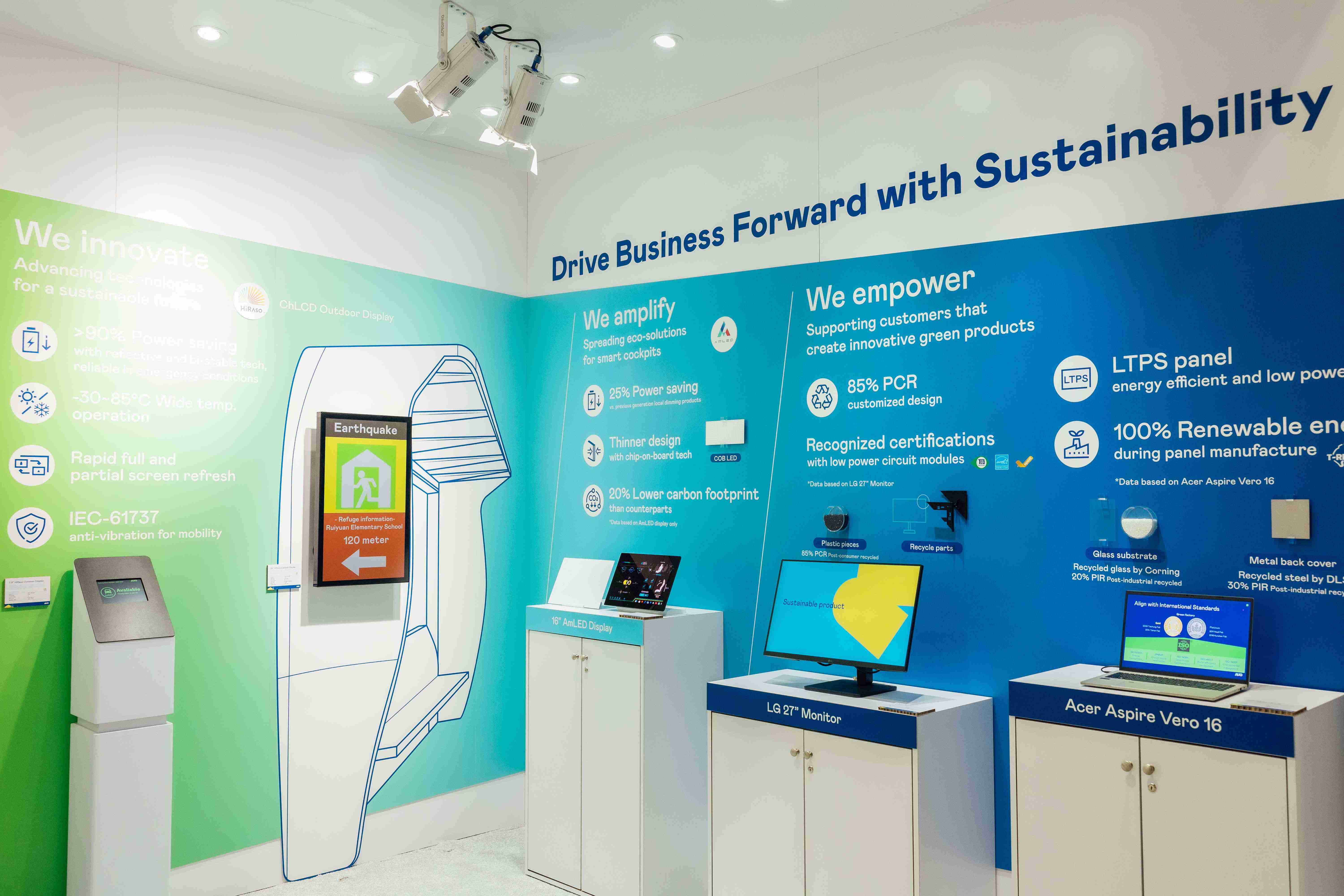 财神娱乐运用创新显示技术HiRaso胆固醇液晶双稳态技术达到显示零耗能、、、、扩大节能省电的AmLED显示技术应用于车用产品、、以再生的消费后回收(PCR)塑料及全绿电生产之面板,,应用于笔电及萤幕,,增加绿色价值。。。。