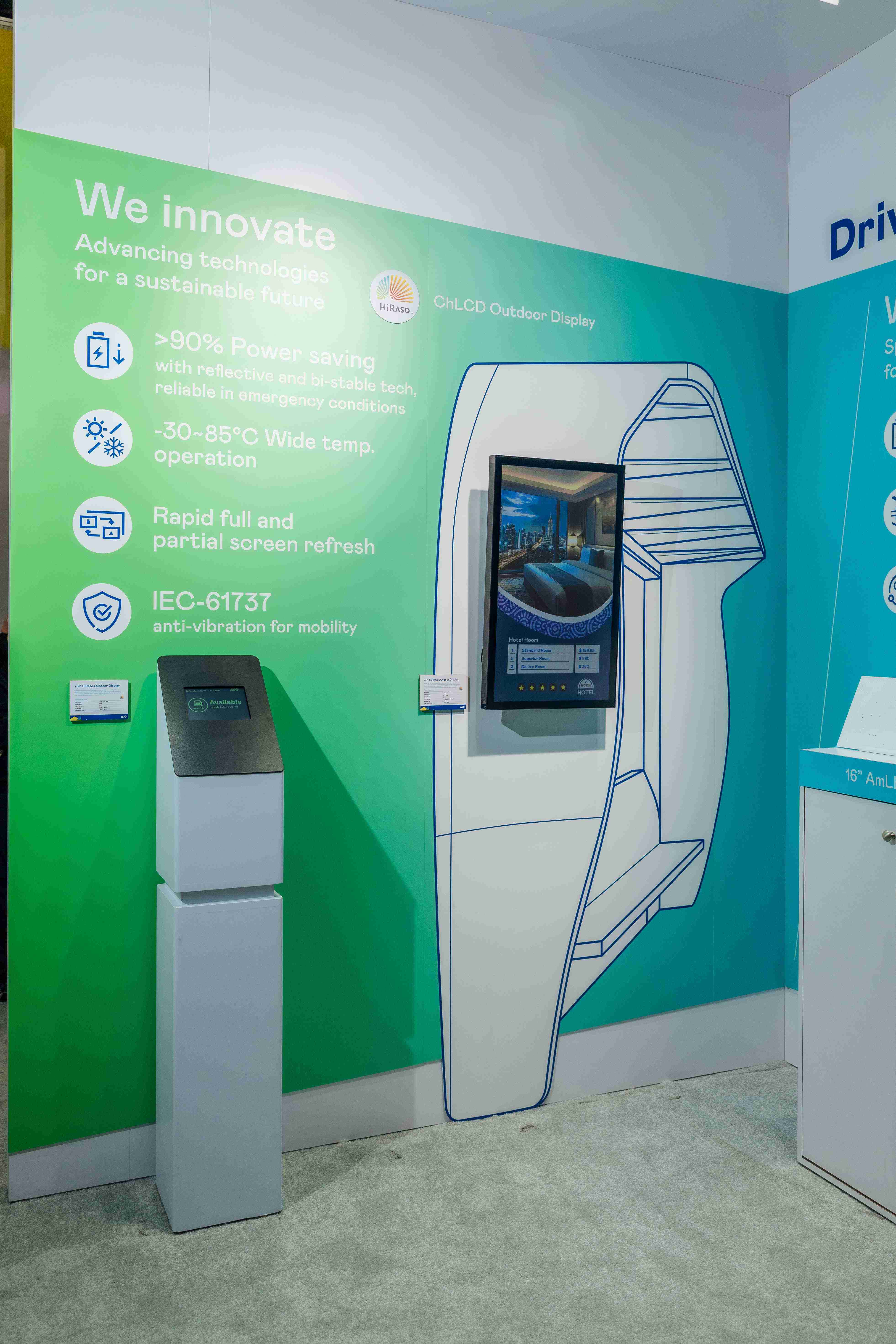 HiRaso胆固醇液晶显示器运用反射环境光线的方式,,呈现影像显示时零耗能的环保省电诉求,,光线愈强愈能呈现绝佳的色彩饱和度及显示效果,,,同时在摄氏-30度至85度间宽温的使用优势,,,为户外电子看板的新首选。。