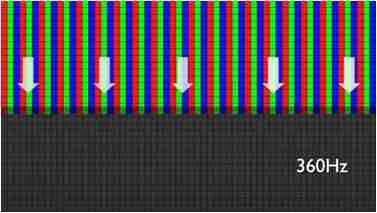 传统液晶驱动是从左到右单向进行,,在画面更新速度愈来越愈快的情况下,,位于驱动线路末端的右下角区域,,,,画素的闸极来不及在短时间内获得足够电压,,无法显示出正确的颜色资讯。。。